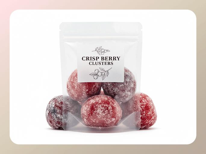 Light, crisp berry bites with mushroom pieces A naturally flavored